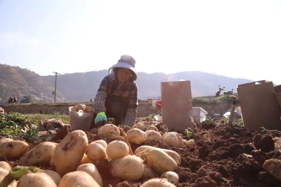 穿过祥临公路,横亘在眼前的是高高耸立的高速路的桥墩,上面是“飞驰而过”的宾南高速。底下是一片片土豆地。这里的土豆据说是用温泉水浇灌出来的,比其他地方出产的要贵上三倍,远销北、上、广、深等地。知道了吧?同样叫土豆,身价有高低。本地的朋友告诉我,一定要用本地的火腿肉小火闷煮,有点小黄锅巴时起锅,你会连小舌头都吞掉。如果是吃到了弥渡老妈妈亲手做的,你就会多了一个弥渡的亲娘,那真叫一个香!