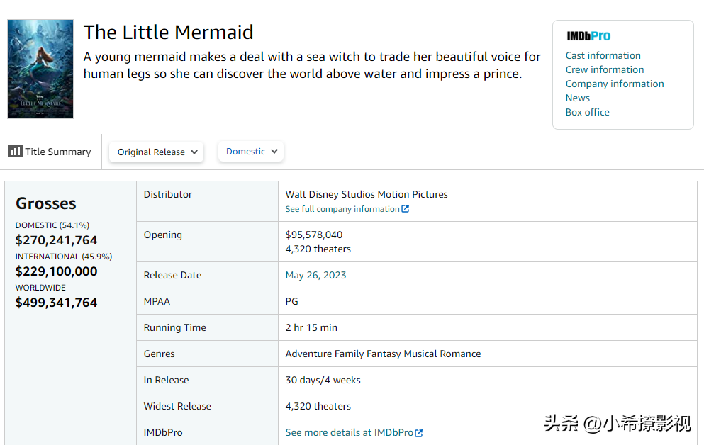 不过,《小美人鱼》的2.5亿美元巨额成本,再加上这部电影因为女主角海莉·贝利的原因,迪士尼后期又投入了巨大的宣传。