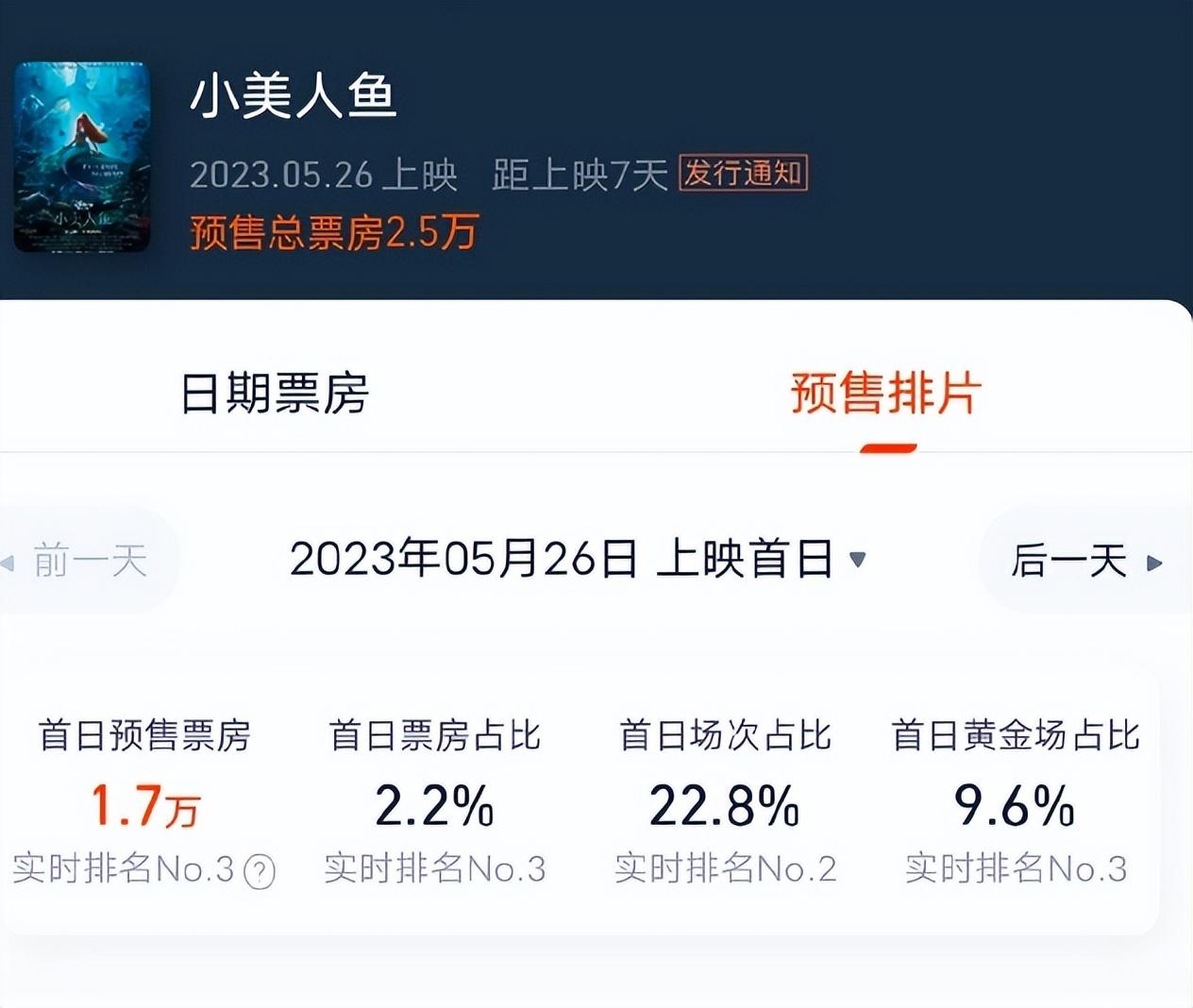 《小美人鱼》预售太惨淡!内地4天票房仅10万,国外同样不乐观-美人鱼票房截至今日多少