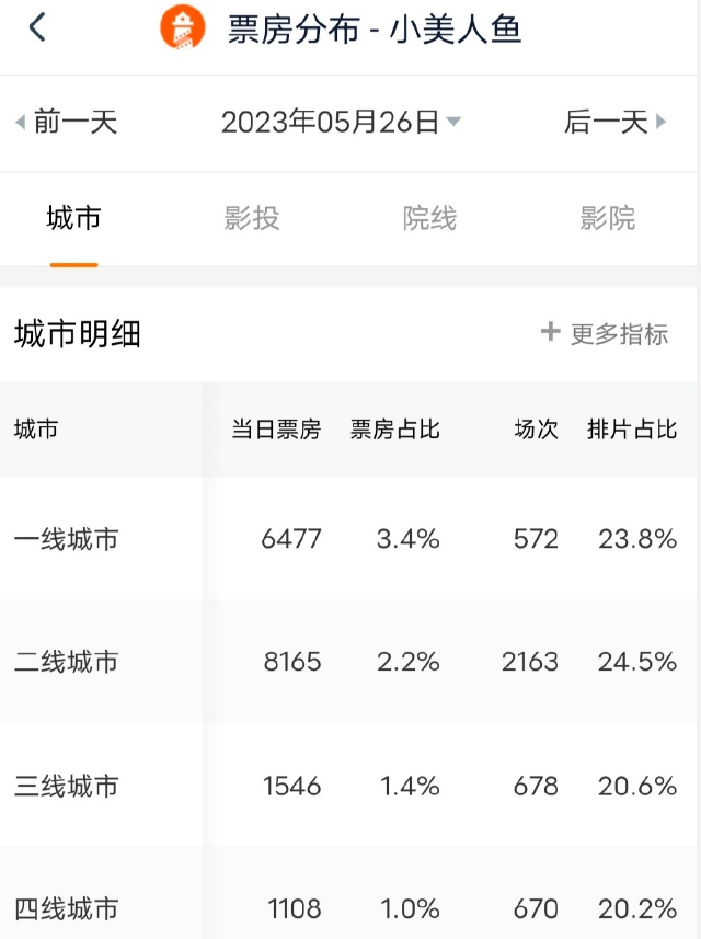 自从本月19日《小美人鱼》正式开启预售以来,票房涨势一直十分缓慢,票房贡献以二线城市居多。