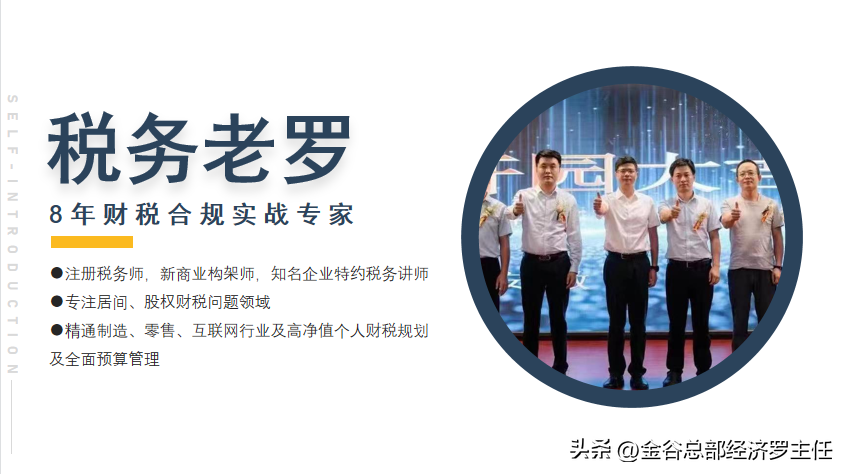 @金谷总部经济罗主任不交税的钱,没有一分是干净的。我是税务老罗,8年财税合规实战专家,注册税务师,新商业构架师,知名企业特约税务讲师。专注居间、股权财税问题领域,精通制造、零售、互联网行业及高净值个人财税规划及全面预算管理。