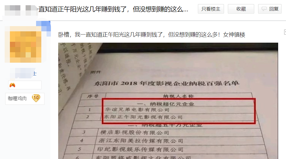 有网友晒出正午阳光2018年缴税过亿的照片,称没想到正午阳光这么赚钱: