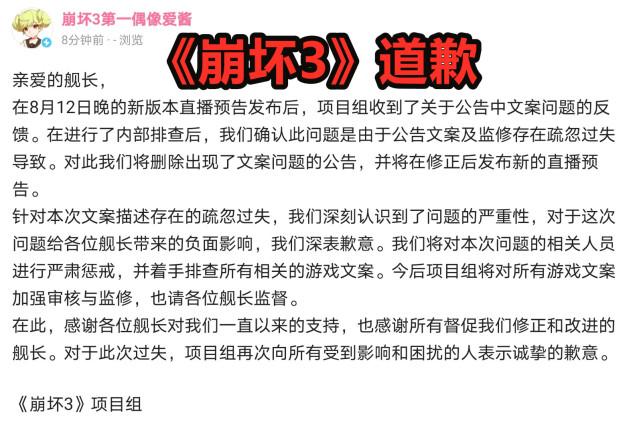 而《崩坏3》这边,在被发现之后迅速撤回文案并道歉,大概真的只是一次失误?