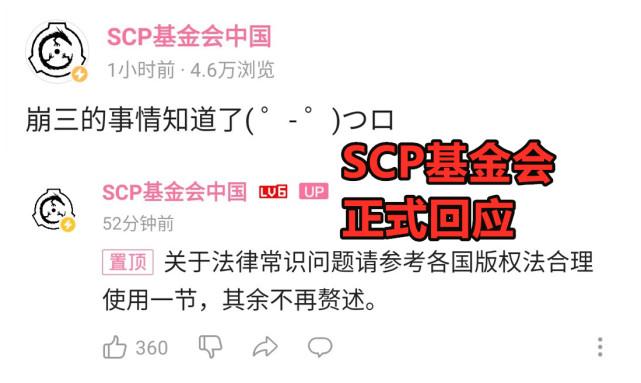 SCP显然也知道这点,因此回应的这两句话其实是在告诉《崩坏3》在引用时,应该标明出处。而米哈游也是立即撤回了“失落迷迭”的游戏文案。