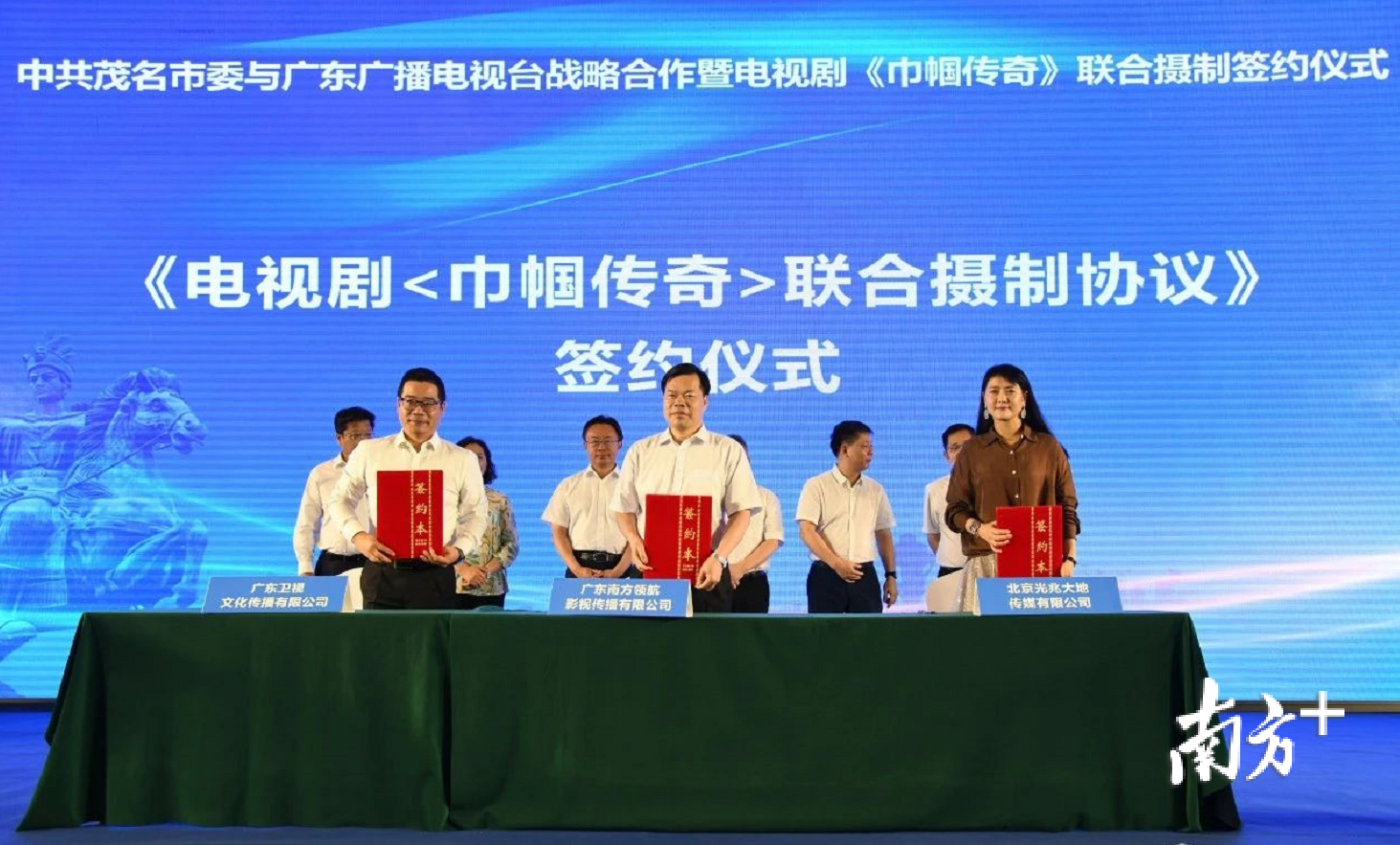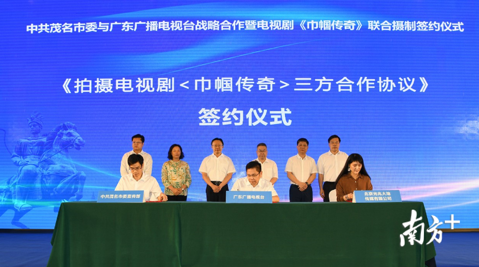 在茂名市委书记、市人大常委会主任许志晖和广东广播电视台党委书记、台长蔡伏青等领导见证下,现场签署了《中共茂名市委与广东广播电视台战略合作协议》《拍摄电视剧三方合作协议》《电视剧联合摄制协议》。