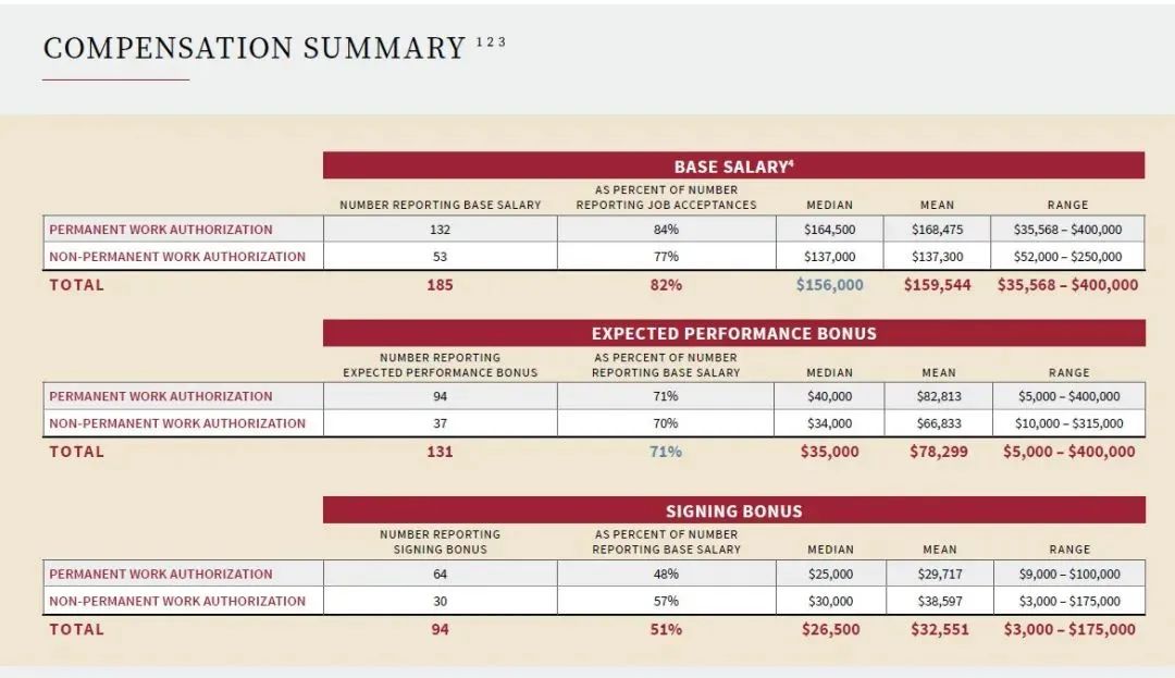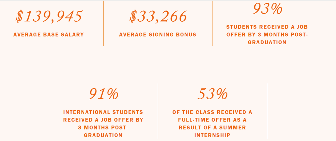 根据哥伦比亚大学发布的就业报告,MBA毕业生就业率(毕业后三个月)为90%,2022年毕业薪资中位数为174,313美元。