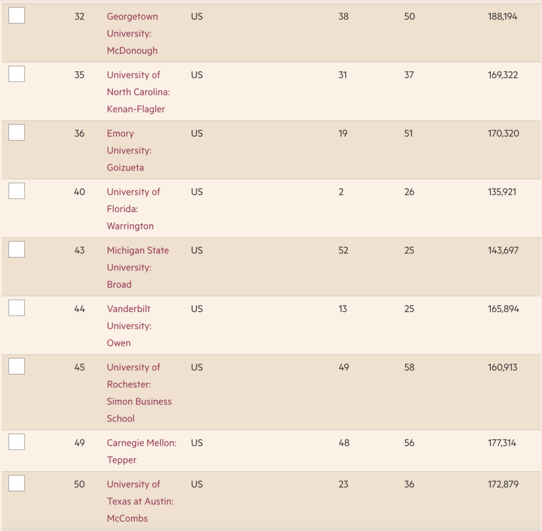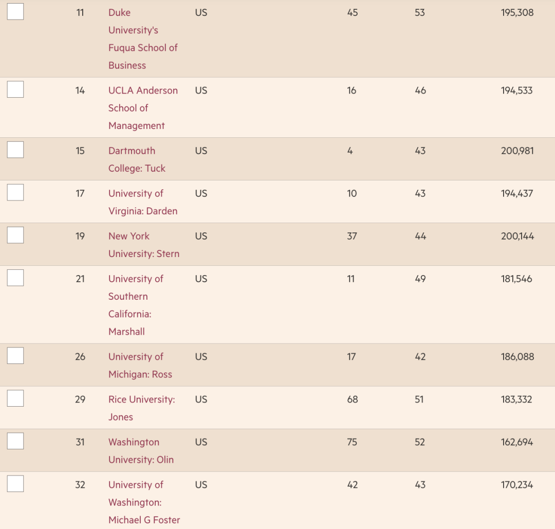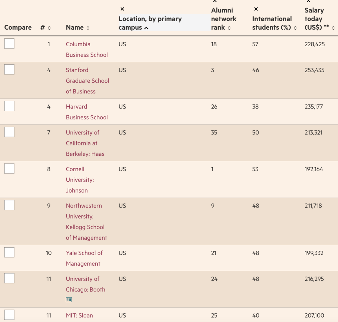 这里还可以结合2月13日英国《金融时报》发布的2023全球MBA排名,进行更加合理的选校。