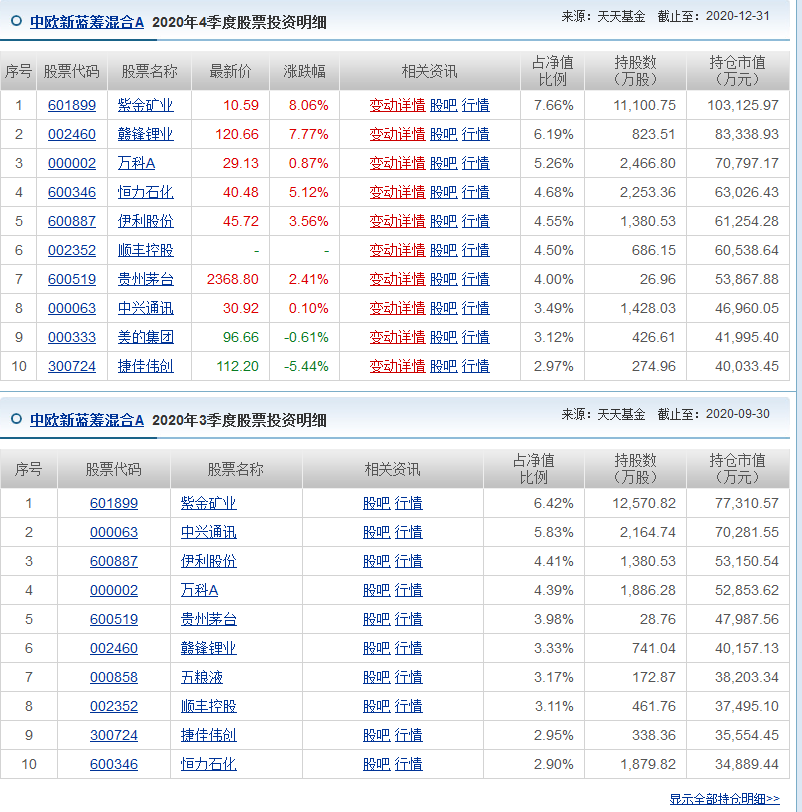另外,在基金的持仓中我们可以看到,基金经理既有自己的主张,会长期持有与市场走势不那么契合的投资标的。比如说中兴通讯,在2018年一月份就已经成为基金的前十大重仓股了,一直到20年四季度基金都没有换掉它,甚至一度占据了基金第一大重仓股的宝座。哪怕这几年因为各种原因的关系,市场对于中兴的认可度不高,至少从2019年3月份到如今,其股价几乎是没有上涨的,基金依然坚定持有。只不过持有比例会有所调整罢了。