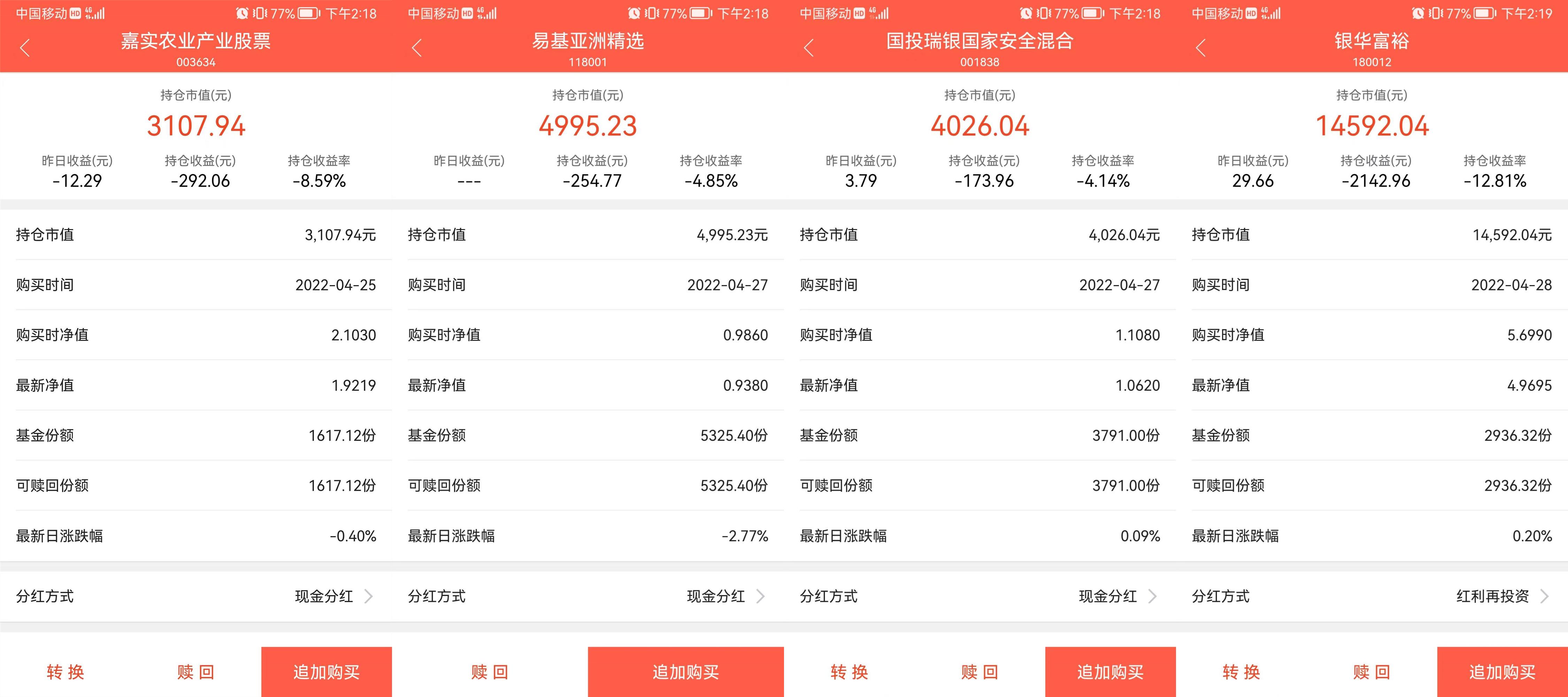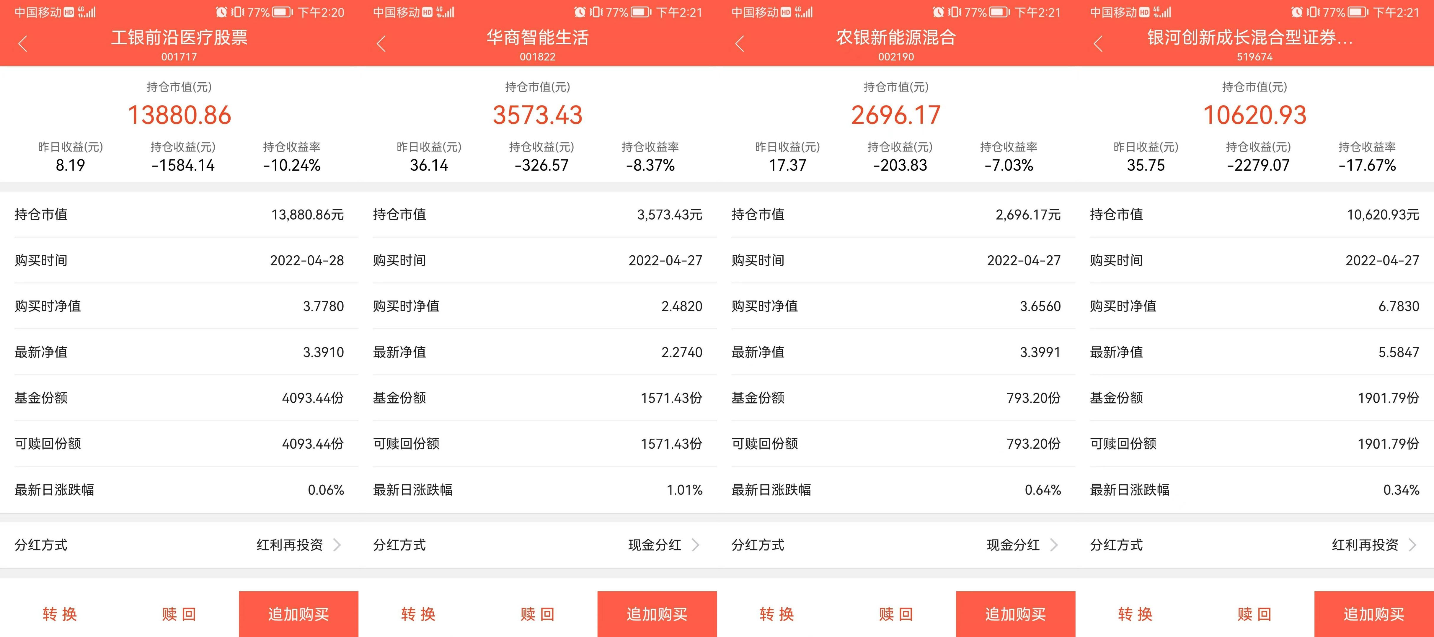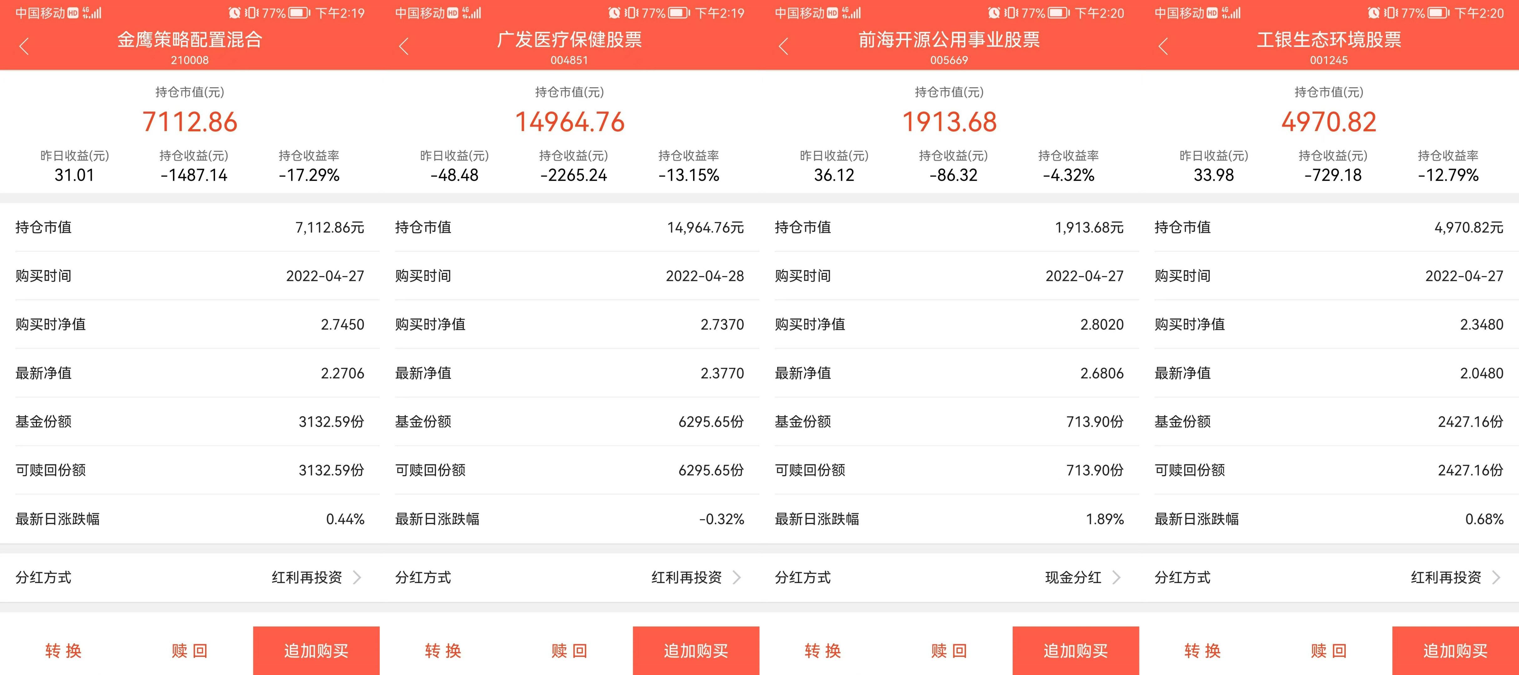 二.现有各基金定投盈亏情况(软件的最新净值有一天延迟)