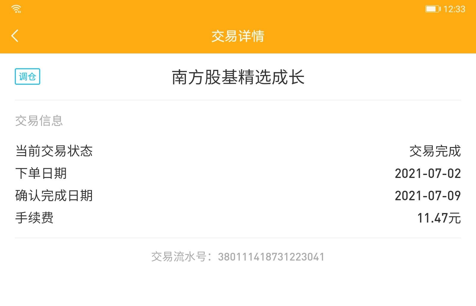 我通过持仓对比发现,南方股基精选成长6月16日之前有过个券更换比例达31.25%的调仓(次数不详)。翻看6月16日以来的交易记录,7月2日又有一次调仓,7月9日完成,调仓手续费达11.47元,这有点出乎我的意料。按最初买入总金额3334元计算,调仓手续费率达0.34%;换一种算法,按赎回手续费0.5%,再申购手续费0.15%算,11.47/0.65%=1764.62元,一次调仓超过总仓位的50%,这个幅度可真不小!