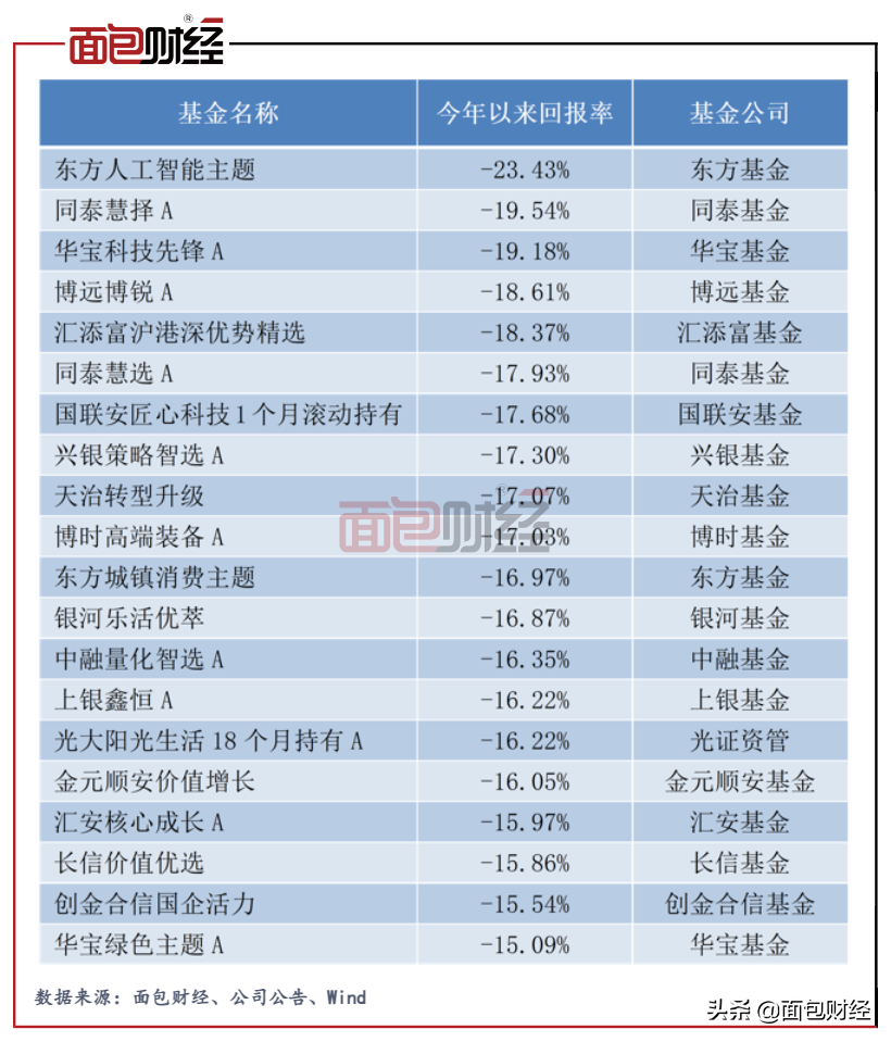 从收益率角度来看,年内回撤超15%的产品共20只,同泰慧择A、华宝科技先锋A、博远博锐A、汇添富沪港深优势精选等产品回撤超过18%。
