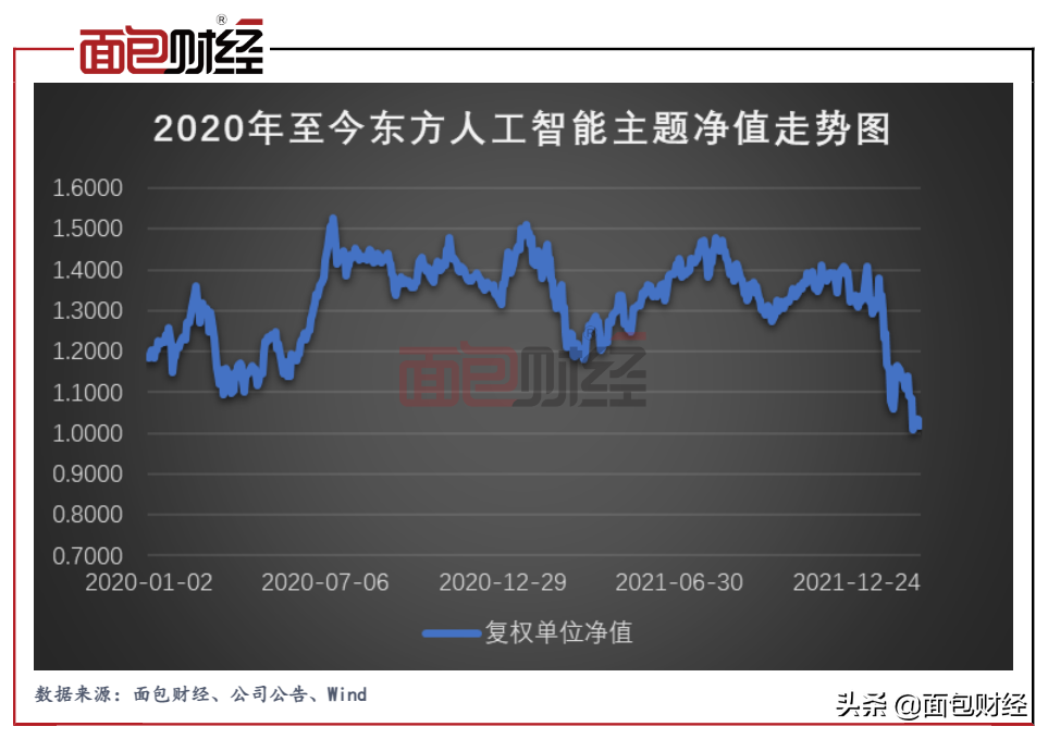 近期,东方人工智能主题基金出现大幅回撤,今年以来回撤已超过20%,较比较基准相差逾15个百分点,在同类产品回报排名中垫底。2022年3月3日盘后,该基金的单位净值已跌至1.018。