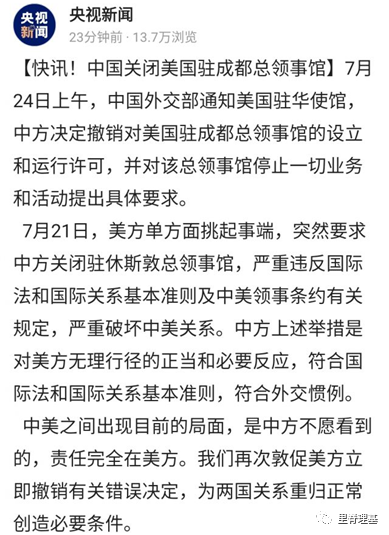 今天A股迎来暴跌,消息面上大家肯定也都知道了,那就是中国决定关闭美国驻成都总领事馆,北向资金应声大幅流出130亿,外资出逃。三大指数持续下探,其中