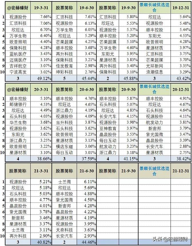 表示本季度相比上季度十大重仓股有一半系数更换。
