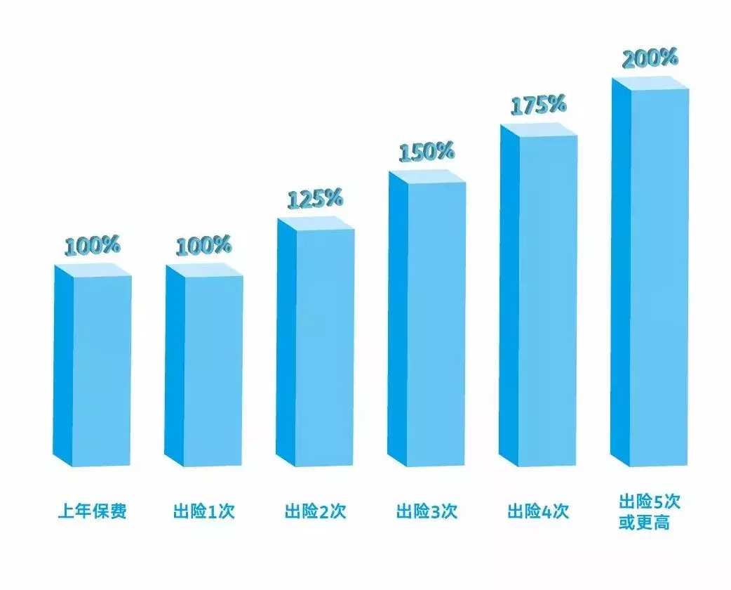 比如,一年出险3次,保费就上浮50%。