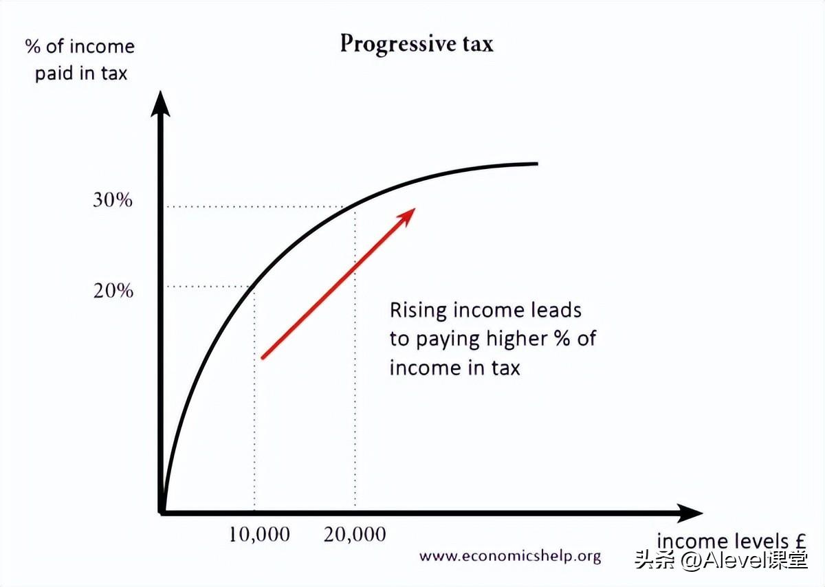This is a tax that when income rises people pay a higher % of their income in tax. For example, the top rate of income tax is 40%. This is paid on earnings over £40,000 a year. 这是一种税收,当收入增加时,人们支付更高的收入百分比的税收。例如,所得税的最高税率是40%。这是对每年超过40,000英镑的收入支付的。