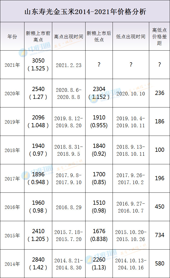 【推荐】「数据分析」历年比价中分析新玉米开秤价2014玉米收储多少