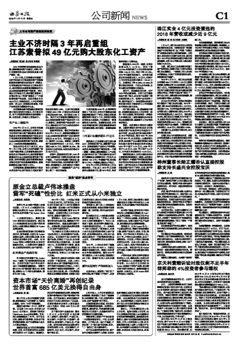 对于重大重组一事,范国林表示看好,其强调收购完成后上市公司将一改单一的主业结构,同时还将进一步整合江苏索普在化工原料领域的技术积累和业务规模优势,显著提升上市公司的盈利能力。