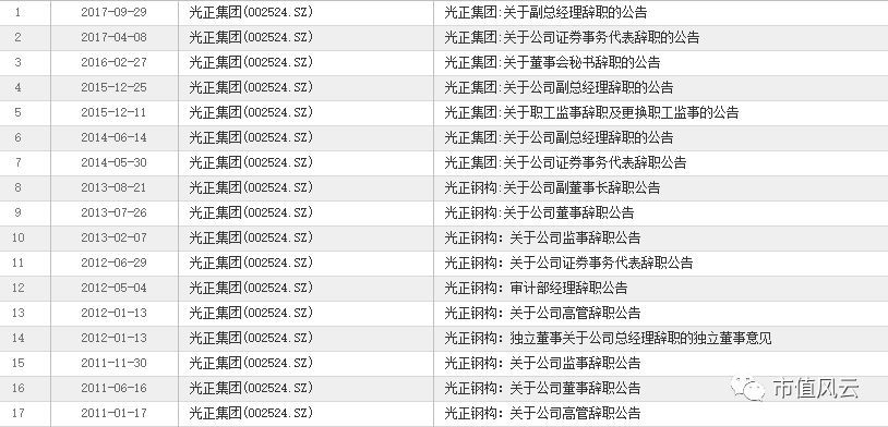 也许是早已感受到了光正集团的衰败,风云君翻阅查阅其历史发现,2010年上市至2017年9月,光正集团每年都有关键角色辞职,其中包括数位董监高。