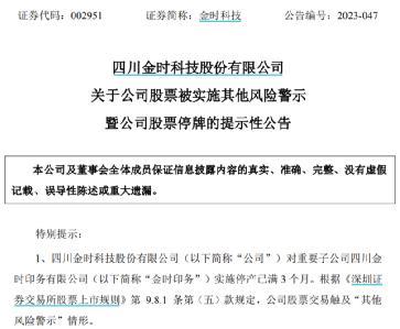 7月17日晚间,金时科技发布公告称,公司股票自07月19日开市起被实施“其他风险警示”,股票简称由“金时科技”变更为“ST金时”, 日涨跌幅限制由10%变为5%。
