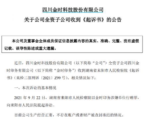 对于金时印务印刷业务订单急剧减少的原因,公司此前在回复关注函时曾透露,自2021年9月湖南省耒阳市人民检察院以金时印务涉嫌单位行贿罪向耒阳市人民法院提起诉讼以来,金时印务原有的合同及订单虽仍正常履行,但该事项已对其品牌声誉及商业信用造成了客观上的损失,给烟标新业务的开发、烟标在供产品下一轮招标中合同的获取等业务活动带来了较大的不确定性及风险。