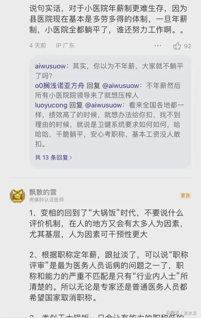 然而,反对者认为,实行「年薪制」可能会引发一系列问题。年薪制可能导致医生之间的不公平,不同医生的工作贡献和职称评定存在主观因素。有可能导致同样工作量的医生薪水差距较大,引发医疗团队内部的不和谐和不稳定。