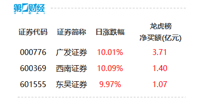 今日有三只券商股登上龙虎榜,机构及游资买入、卖出前5名合计净买入广发证券3.71亿元,分别净买入西南证券、东吴证券1.4亿元、1.07亿元。