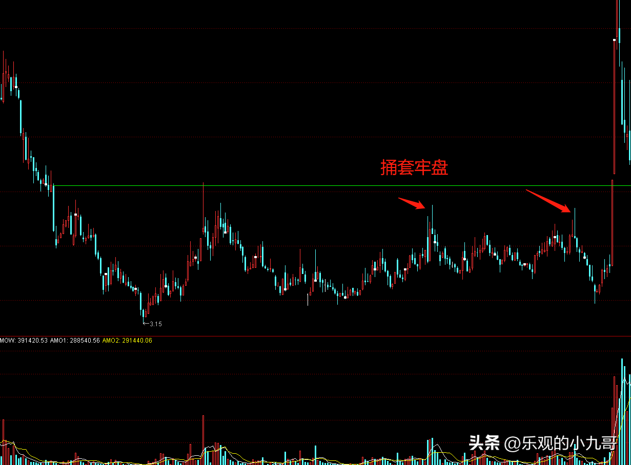 所以一定会有消化套牢盘的动作,当我们找出套牢盘的位置,主需要观察主力是否有消化套牢盘的动作,如果出现了那么这里大概率就是洗盘的开始。