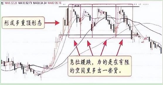 庄家用这种方式在高位反复制造震荡,让散户误以为只是在整理,而其实则在震荡中慢慢分批出货。如下图: