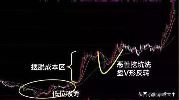 主力在拉升阶段的主要任务是使股价脱离主力吸筹成本区,打开利润空间。在这个过程中主力还会利用部分手中的筹码进行打压式洗盘。例如在上升趋势途中出现一段V形正反转的股价走势,股价急跌之后又连续上涨,被称为“恶性挖坑洗盘V形反转”。主力此举的目的就是为了吓跑前期跟风买入的短线客,通过一小段震荡走势让短线客了结手中的筹码,而主力能够乘机承接,提高自己的控盘程度。
