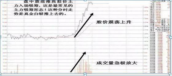1、震荡推高股价吸筹后股价被快速拨高大涨甚至涨停