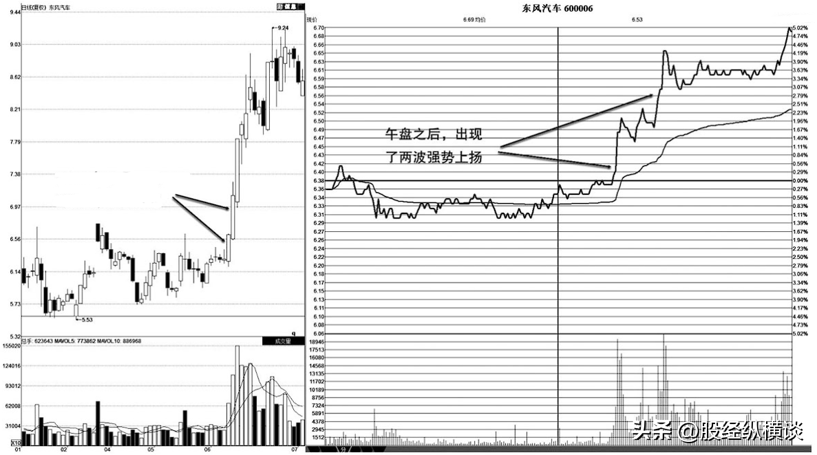 午盘后发力+早盘承接是指个股早盘运行平稳,但在午盘之后明显走强,出现了流畅上扬的盘口形态,收盘前稳稳站于均价线上方,次日开盘之后,个股也能维持相对强势的运行格局。