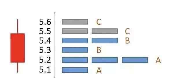 可以看到2号的筹码分布和前一日的有了明显的区别,这是由于成本处于低位的A离场所致,此时市场上的大部分投资者均处于套牢的状态中。这便是筹码的移动反映在筹码分布图上的结果。