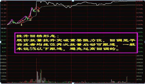 股价放量拉升,突破了重要阻力位(包括了前一天的收盘价,当天的开盘价和当天最高价),股价攻击形态已经确立,大涨趋势已经形成了。当股价回档到均价线附近的时候,就可以买进了