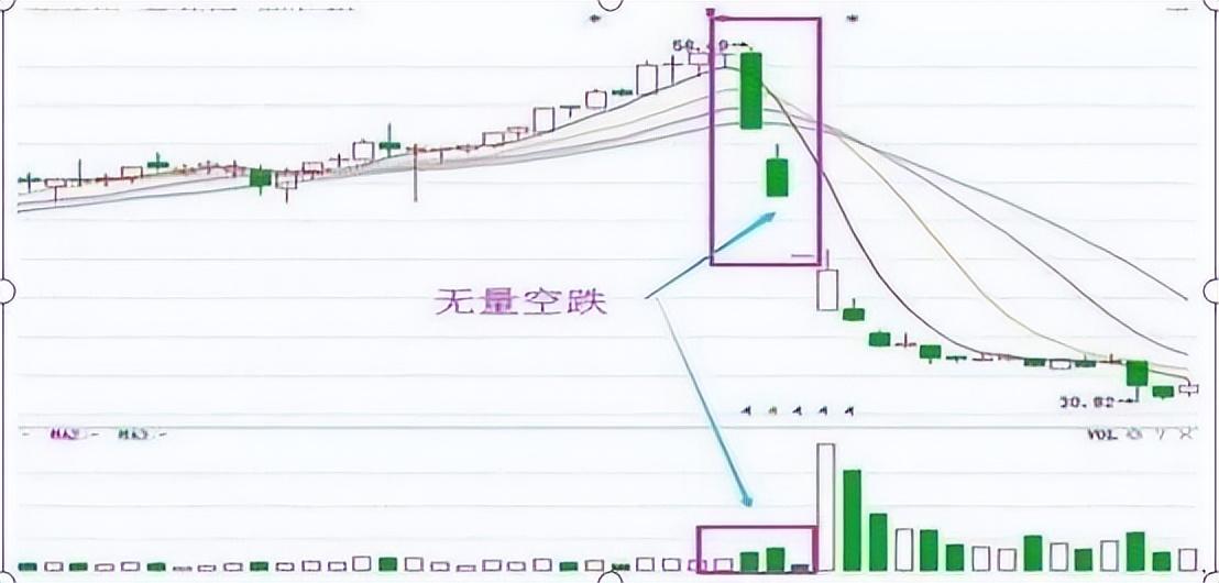 无量空跌是指个股在成交量很少的情况下,其股价出现较大跌幅的现象,它是量缩价跌的极端形式,多数出现在一些跳水的庄股或有重大利空消息的个股中。