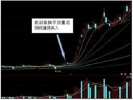 长期低换手的底部股票,突然某日高换手放量上涨,则表示该股新资金进入的可能性较大,此时可在放量后缩量回调的阴线时逢低买入。