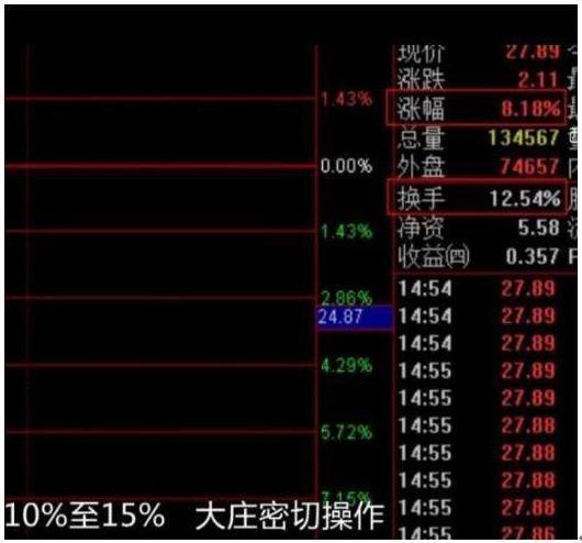 5、10%-15%的日换手率假如不是在上升的历史高价区或者见中持久顶的时段,则意味着强庄股的大举运作。