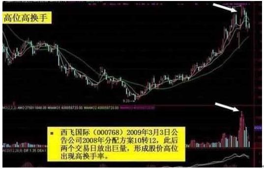 相对高位股票突然出现单日尤其是数日连续高换手,则表示主力派发的意愿明显,此时不管该股是上涨、横盘还是下跌,在充分考虑风险的前提下,都应该先卖出静观其变。