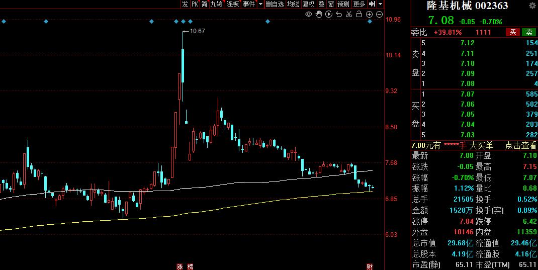 阳光照明、隆基机械、领益智造等4股连续下降7期及以上;