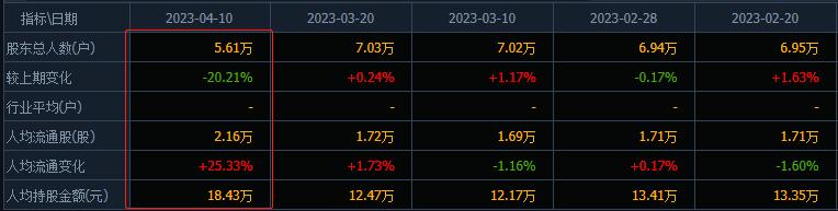 唐人神次之,公司最新一期股东人数为5.61万,较上期下降20.21%
