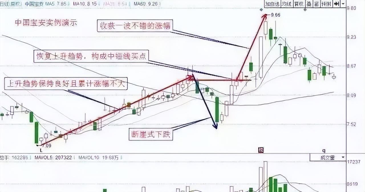 一只股票上升趋势良好且累计涨幅不大,明明走得好好的,突遇断崖式的崩溃形下跌,一般是主力急跌挖坑骗筹,中短线适当介入。