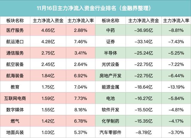 中药板块流出35亿元,以岭药业流出超13亿元,众生药业流出超8亿元,特一药业流出超2亿元,陇神戎发、仁和药业、贵州三力、龙津药业流出超1亿元。