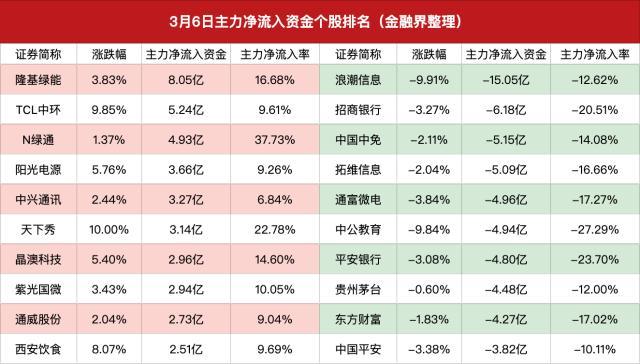 从个股来看,两市A股中主力资金净流入超1亿的有35家公司,净流出超1亿的有80家公司。