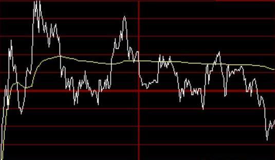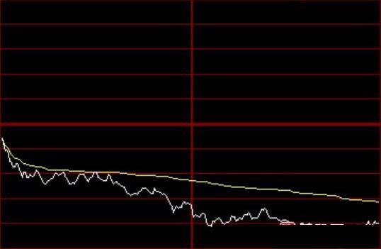 图二刚好与图一相反,开盘黄线就压着白线下移,十点半前白线反抽黄线两次三次精准的突破不上来,那么十点半后就是卖点!大概率就是一路出溜儿下去了。