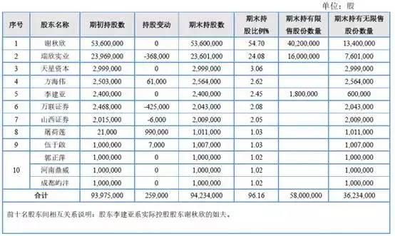 2016年9月28日,谢秋欣将持有的4000万股股权质押给郏县农村信用社,占公司总股本的40.82%,为河南昊乾商贸有限公司2000万元贷款提供质押担保。质押期限2016年9月23日起至2017年3月21日止。