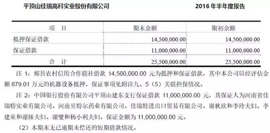 2015年12月10日佳瑞高科公告称,为河南贝特尔药业有限公司向平顶山叶县农村信用合作联社1000 万元借款合同提供担保。担保性质为连带责任担保,担保期限1 年。