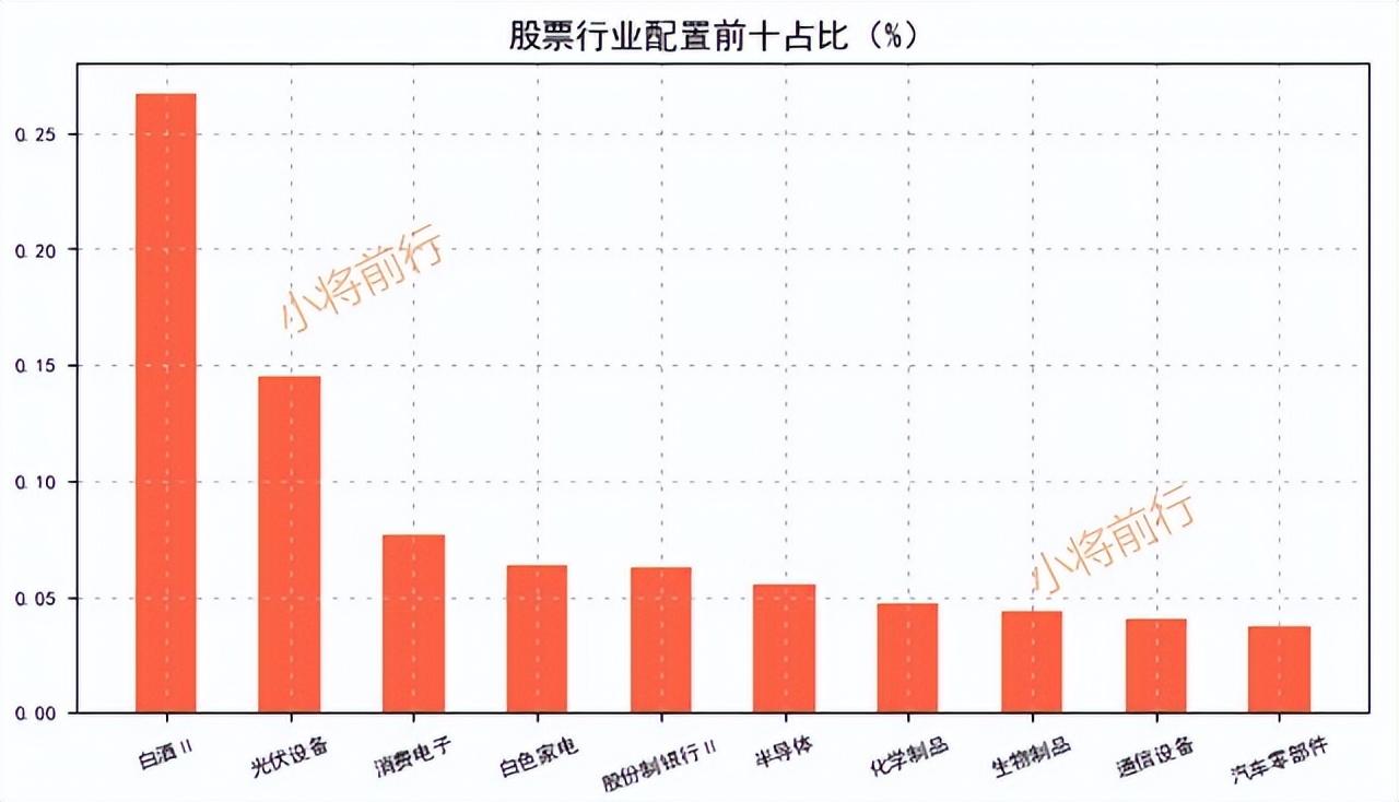 从前十大行业配置来看,易方达行业领先混合目前主要以白酒、光伏、消费电子、白电、商业银行为主,以半导体、化学生物制品、通信和汽车零部件为辅。