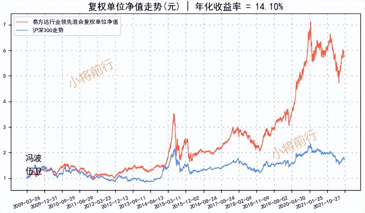 易方达行业领先混合成立于2009年3月26日,成立以来由伍卫和冯波担任基金经理,伍卫在2010年年底离开,冯波一直担任基金经理到想在,截至到当前,年化收益率14.1%,净值上涨了6倍,如果投资者长线持有的话能取得非常好的回报,拉长时间线来看,投资收益远远高于沪深300。