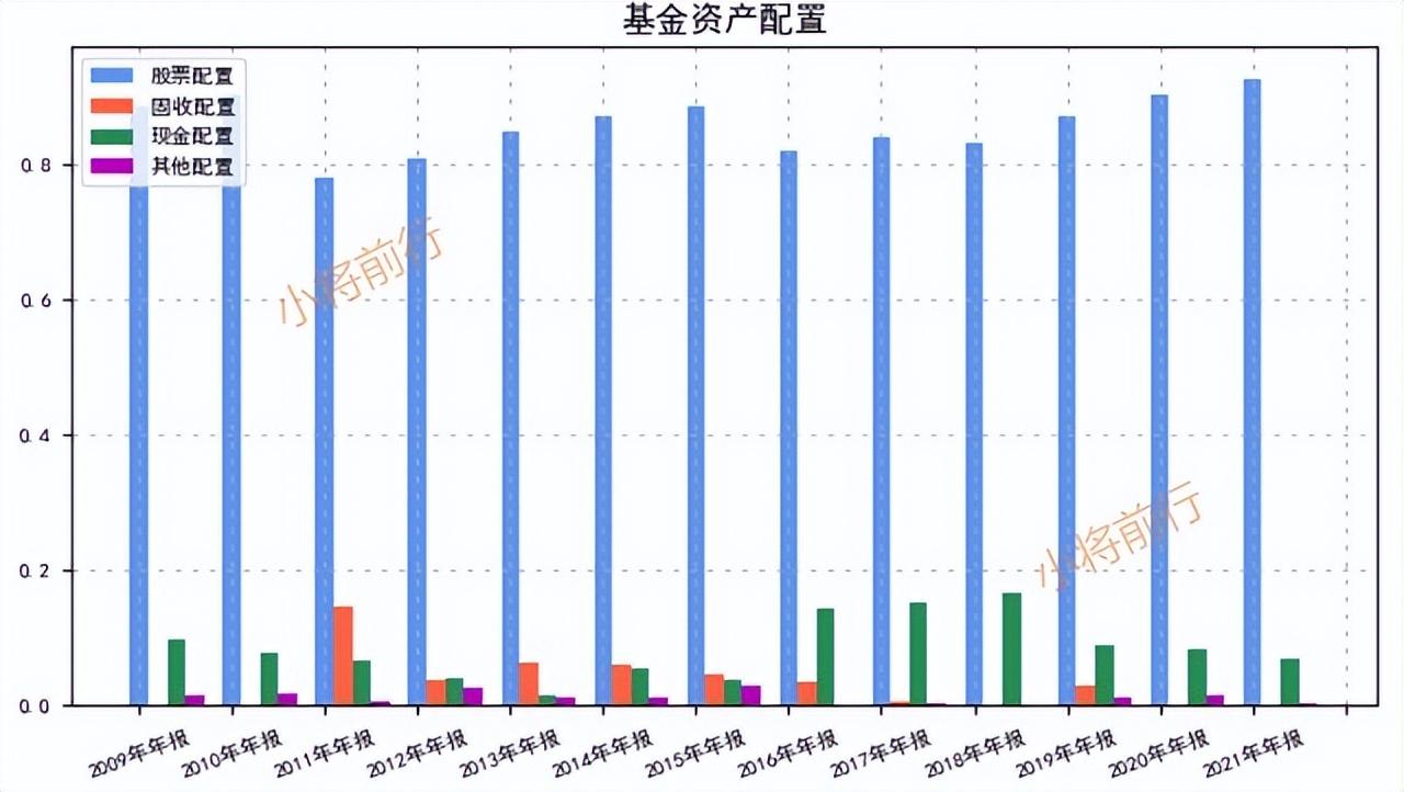 从易方达行业领先混合的年报资产配置统计来看,基本常年是保持90%左右的股票仓位,固收配置非常低,接近零,而现金平均大概在7%左右。可以看出易方达行业领先混合常年基本是满仓运作的。