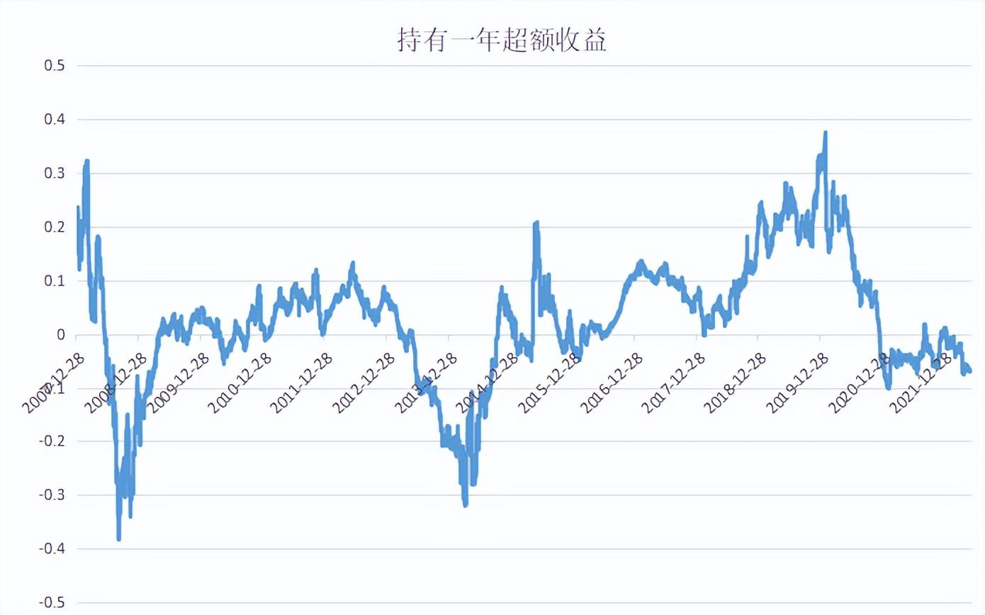 1、不是任一天买入偏股基金并持有一年都能跑赢中证全指的,